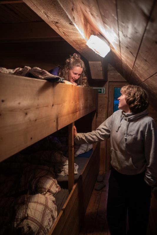 Während eures Aufenthalts übernachtet ihr in geschlechtergetrennten Mehrbettzimmern auf der Stefansbergalm in Österreich. Die Alm ist eine ursprüngliche und authentische Berghütte mit schrägen Dächern, sichtbaren Holzbalken und knarrenden Holzböden – ein echtes Almgefühl, bei dem vor allem größer gewachsene Personen ein wenig auf die Kopffreiheit achten sollten. Die Schlafbereiche sind unterschiedlich geschnitten und bieten Platz für Gruppen von fünf bis zehn Personen.