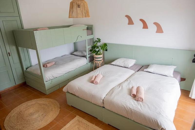 Bei Surfinn findet ihr verschiedene Zimmertypen, darunter zwei 4-Bett-Zimmer. Diese Privatzimmer sind ideal für Familien oder Gruppen von Freunden. Sie sind mit zwei Einzelbetten ausgestattet, die zu einem Doppelbett zusammengestellt werden können, sowie einem bequemen Hochbett. Genießt die hochwertigen Matratzen und erholt euch gut für einen neuen Tag voller Surfabenteuer!