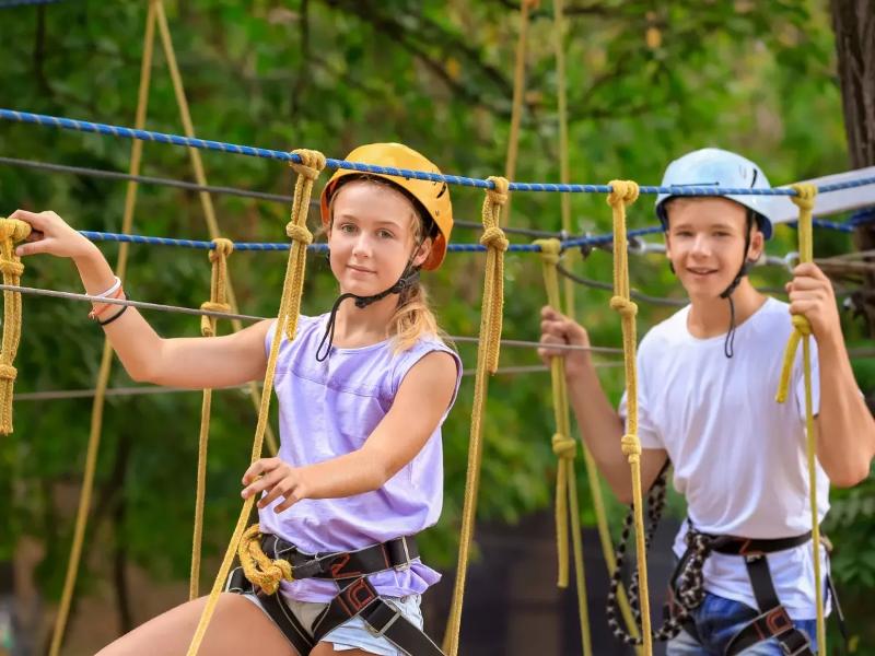 In unserem Camp erlebt ihr viele spannende Aktivitäten! Im Hochseilgarten könnt ihr eure Geschicklichkeit testen, und beim Bogenschießen zeigt ihr, wie gut ihr zielen könnt. Auf der Sommerrodelbahn geht es rasant den Berg hinunter – ein echter Adrenalinkick!
