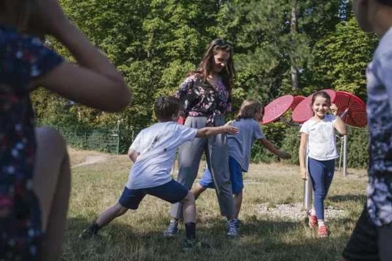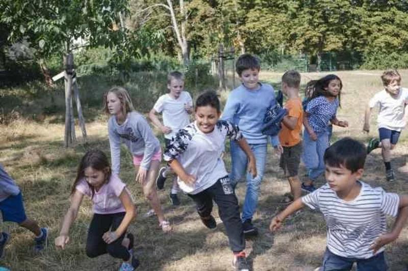 Im geschützten Außenbereich mit Wiese, Sportmöglichkeiten und direktem Zugang zur Elfiewiese gibt es viel Raum für Spiele und Bewegung. Bei gutem Wetter finden Aktivitäten und Mittagessen oft draußen statt, im Sommer auch mit einem Ausflug ins Schwimmbad.