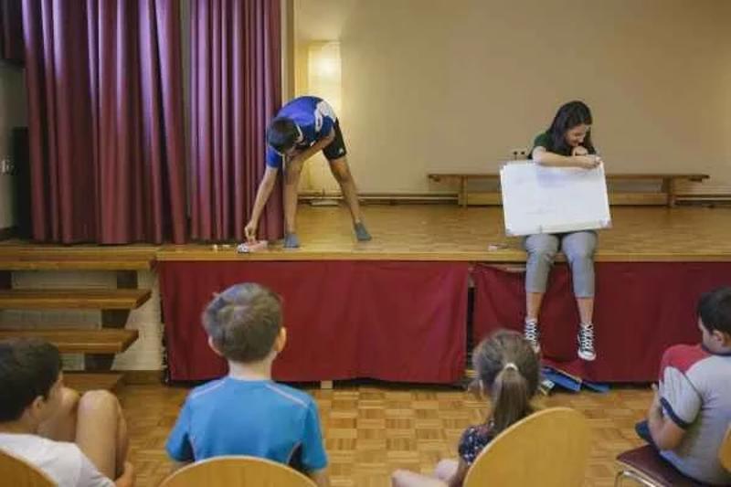 Das Mehrgenerationenhaus Phoenix in Berlin-Zehlendorf bietet während der Campwochen viel Platz für Aktivitäten. Innen gibt es mehrere Gruppenräume und einen großen Saal mit Bühne, draußen stehen ein eigener Hof, Sportgeräte und die angrenzende Elfiewiese für Spiele und Geländespaß zur Verfügung. Mittagessen und Projektphasen können flexibel drinnen oder draußen stattfinden, bei schönem Wetter geht es einmal wöchentlich ins nahegelegene Schwimmbad.