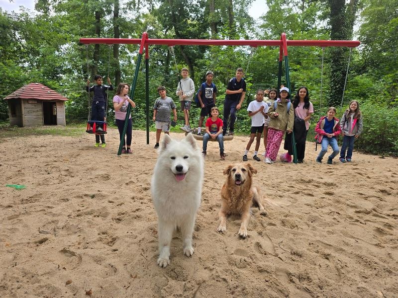 Im praktischen Teil sammeln die Kinder direkte Erfahrungen mit den ausgebildeten Pädagogikhunden Nala und Malou. Bei gemeinsamen Spaziergängen üben sie das sichere Führen an der Leine, trainieren Hundebegegnungen aus dem Alltag und lernen, durch klare Körpersprache und einfache Kommandos verständlich zu kommunizieren.