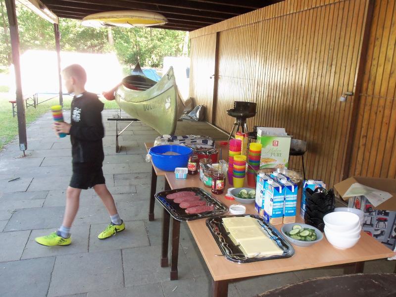 Morgens und abends essen wir gemeinsam draußen auf dem Gelände des KCL ( Kanu-Club Lachendorf e.V. ), eine Überdachung ist vorhanden. Außerdem grillen wir (auch vegetarisch und vegan) und lassen den Tag gemütlich am Lagerfeuer ausklingen.