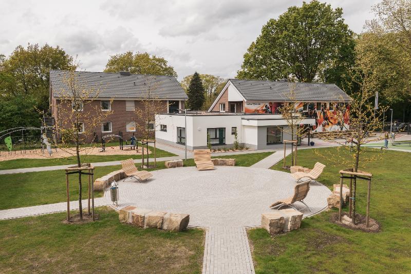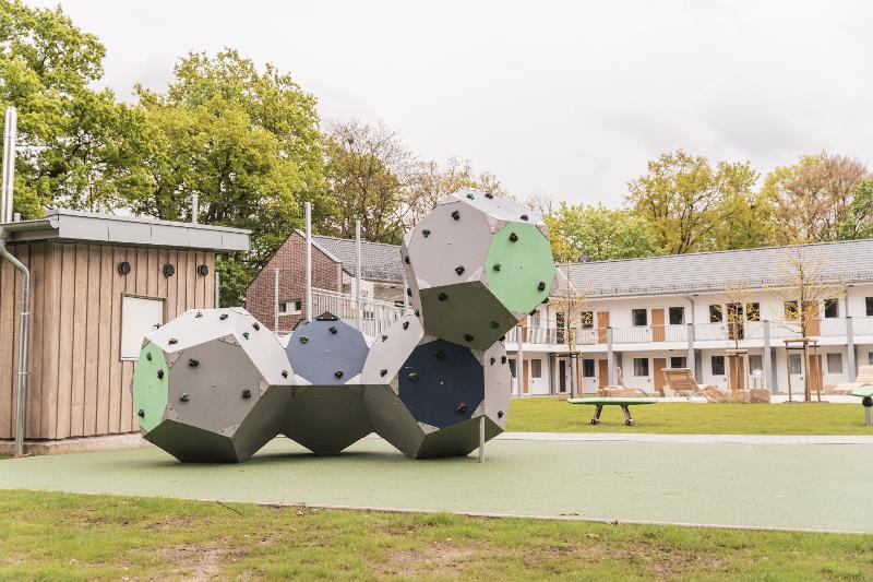 Die Jugendherberge Rheine liegt stadtnah am großen Stadtpark und ist nach einer umfassenden Modernisierung besonders gut für Kinderferienfreizeiten geeignet. Die frisch renovierten Zimmer und neuen Gemeinschaftsbereiche bieten viel Komfort und Platz für Gruppen. Auf unserer Spielfläche mit Multifunktionsfeld, Kletterwürfel, Spiel- und Turngeräten sowie Tischtennisplatten für Bewegung und Spaß. Abwechslungsreiche Mahlzeiten und die moderne Ausstattung machen den Aufenthalt rundum gelungen.
