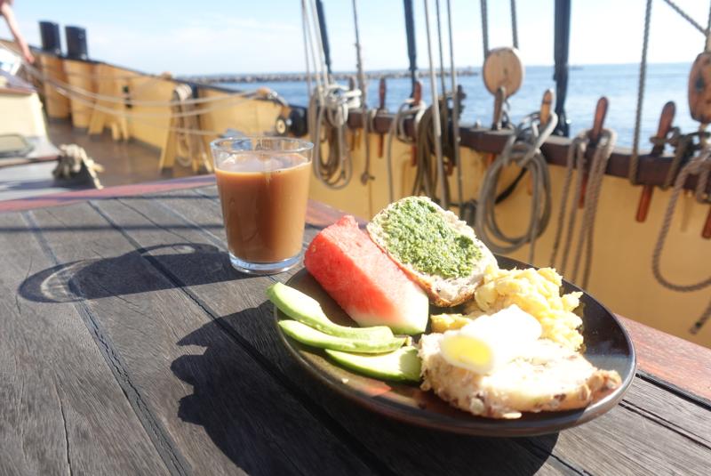 Ihr werdet mit einer köstlichen Vollpension versorgt. Unser ausgezeichneter Bordkoch legt besonderen Wert auf gutes Essen. Ein wichtiger Teil des Programms ist die gemeinsame Vor- und Zubereitung der Mahlzeiten, das heißt, wir kochen unser Essen selbst.