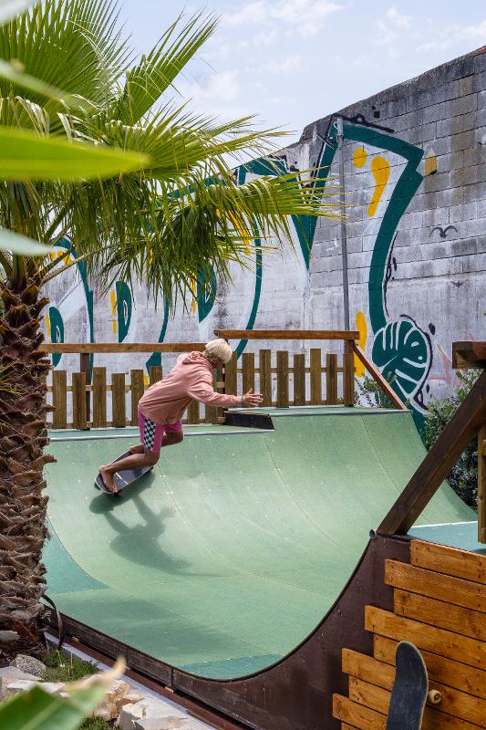 Der 300 m² große, hauseigene Skatepark bietet dafür die perfekte Umgebung. Mit Streetelementen, Flutlicht für abendliche Sessions und einer Mini-Rampe, umgeben von Palmen, ist er der ideale Ort, um euer Skateboarding zu verbessern. Hier könnt ihr euch voll und ganz auf das Skaten konzentrieren – ganz ohne Ablenkung.