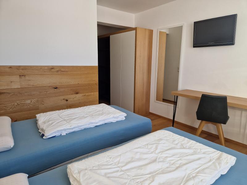 Zimmer: Das Haus verfügt über 96 Betten. Die meisten Zimmer verfügen über zwei auseinanderziehbare Einzelbetten und über ein Schlafsofa in Bettqualität (160×200 cm) für zwei weitere Personen. Darüber hinaus gibt es Doppel-, 6-Bett und 8-Bett-Zimmer. Alle Zimmer verfügen über eine Dusche und ein separates WC. Einige Zimmer verfügen auch über einen Balkon. Bei der Zimmerbelegung versuchen wir die Zimmer möglichst so einzuteilen, dass ihr mit euren Freunden auf einem Zimmer seid. Bettwäsche und Handtücher müssen mitgebracht werden.