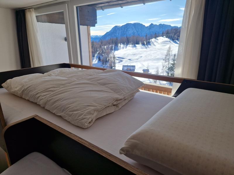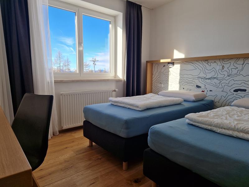 Das Haus verfügt über 180 Betten und ihr seid in 6-, 8- oder 10-Bett-Zimmern untergebracht. Alle Zimmer verfügen über Dusche/WC. Einige Zimmer verfügen auch über einen Balkon. Wenn ihr mit euren Freunden auf ein Zimmer kommen möchtet, gebt das gerne in das Anmerkungsfeld bei Buchungsabschluss an. Außerdem gibt es in dem Haus vier Speisesäle, ein Panorama-Hallenbad und eine Zirbenholz-Sauna. Die Nutzung der Einrichtungen ist für euch natürlich kostenlos.