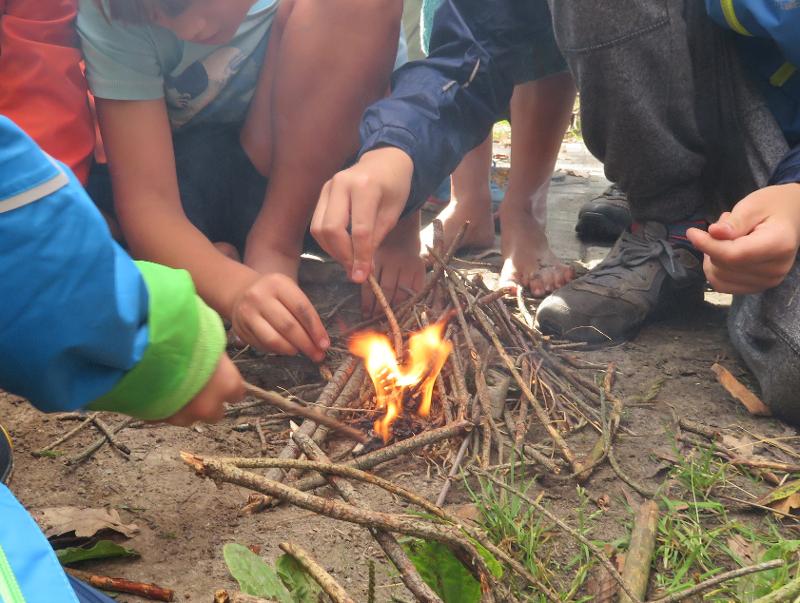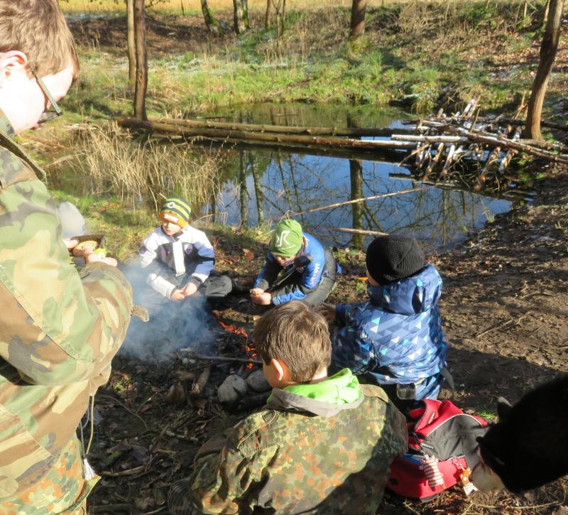 Das ultimative Erlebnis ist der Übernachtungstrip in die Wälder. Jedes Kind baut seine eigene kleine Waldhütte aus Ästen, Zweigen und Laub. Ihr entzündet euer eigenes Feuer – ganz ohne Streichhölzer und Feuerzeug. Unter dem Sternenhimmel lauscht ihr den Geräuschen des Waldes – dem Ruf des Käuzchens, dem Rascheln kleiner Tiere und dem geheimnisvollen Knistern im Dunkeln.