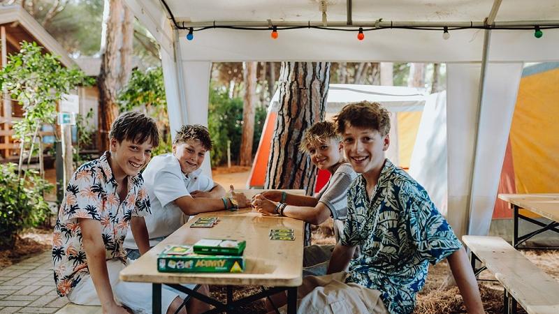 In eurem eigenen Bereich im Camp habt ihr jede Menge Platz, um mit euren Freunden zu chillen und Spaß zu haben. Hier gibt es Tische, Bänke und ein großes Sonnensegel, das euch an heißen Tagen Schatten spendet. Abends wird es richtig cool: Mit bunten Lichtern und einer Show-Bühne wird die Stimmung perfekt, um gemeinsam zu feiern und tolle Shows zu erleben. Der Campingplatz selbst hat alles, was ihr braucht – es gibt einen Sportplatz, Restaurants und sogar einen kleinen Minimarkt. Und falls ihr eure Erlebnisse mit Familie und Freunden teilen möchtet, gibt es an vielen Stellen WLAN!